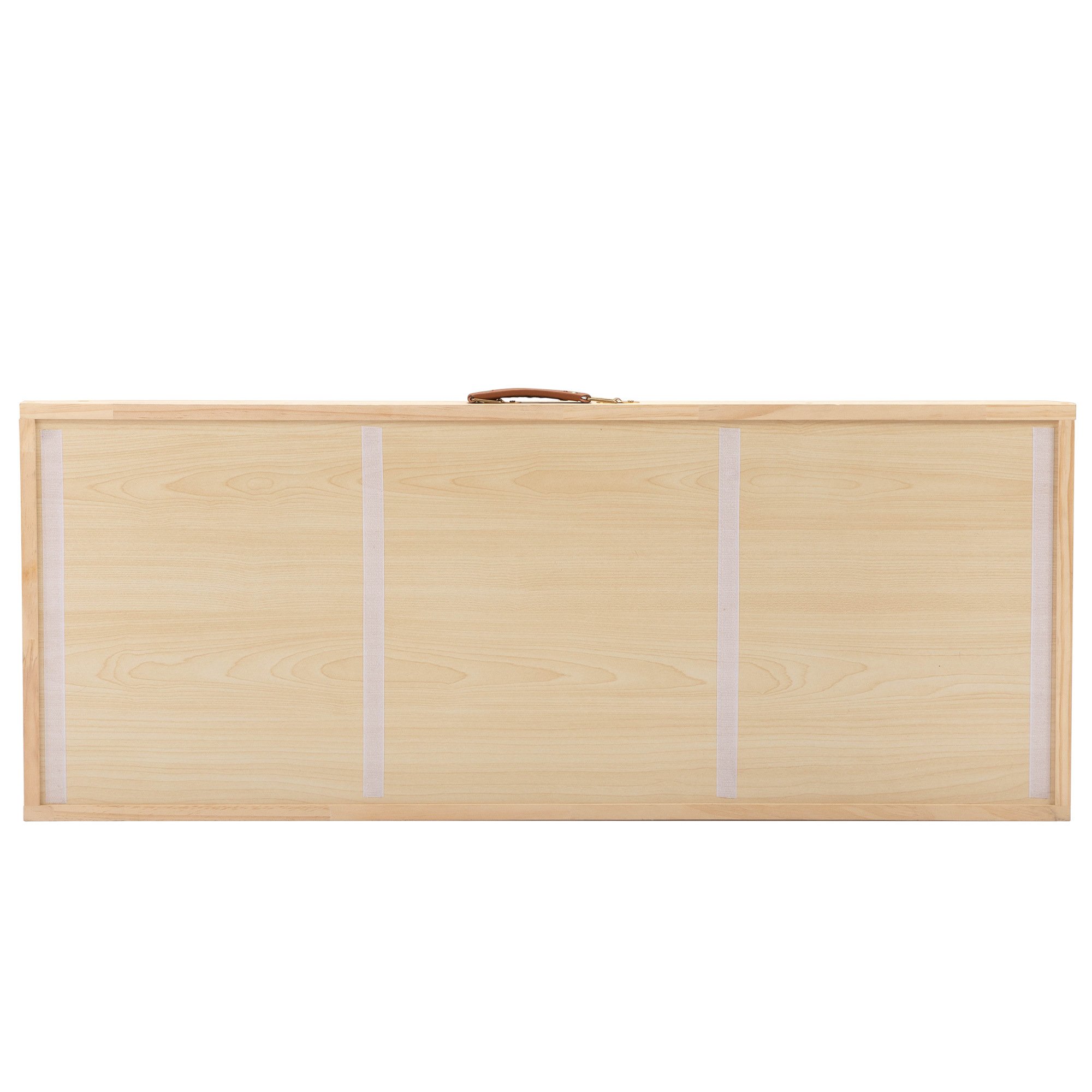 Specifications:Color: Natural + GrayMaterial: New Zealand Pinewood + Density BoardUnfold Dimensions: 37.6"L x 15.8"W x 23.6"HFold Dimensions: 39.4"L x 15.8"W x 2.4"HAdjustable Height: 15.8"; 19.7"; 21.7"; 23.6"Adjustable Angle: 40°-60°Thickness of Carpet: 0.2"Velcro Size: 14.2"L x 0.8"WWeight Capacity: 110 lbsNet Weight: 9.5 lbsThe slope is equipped with a leather handle on the side, and a locking buckle on the bottom and slope
