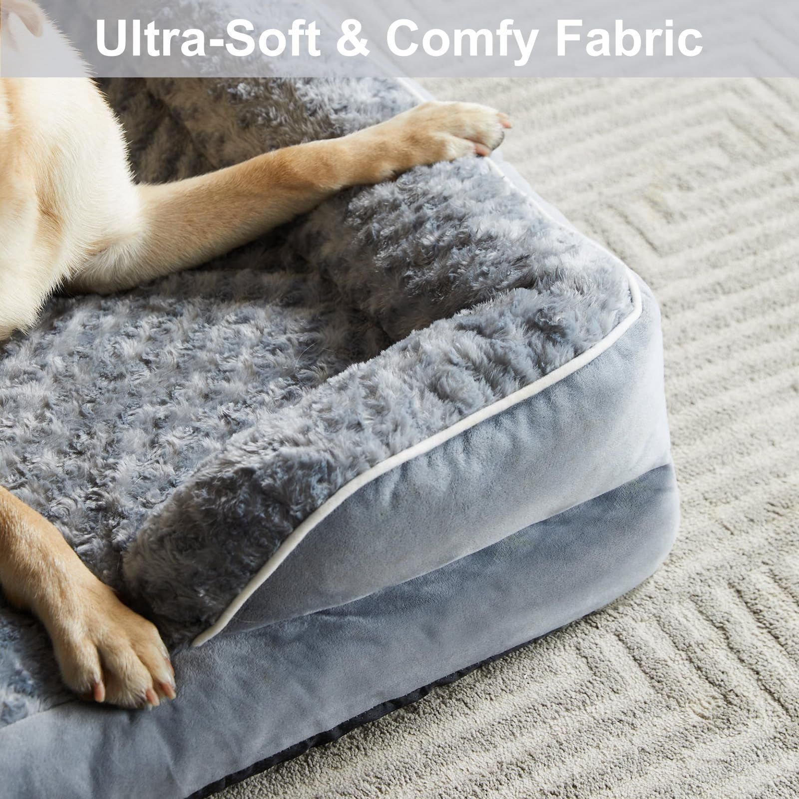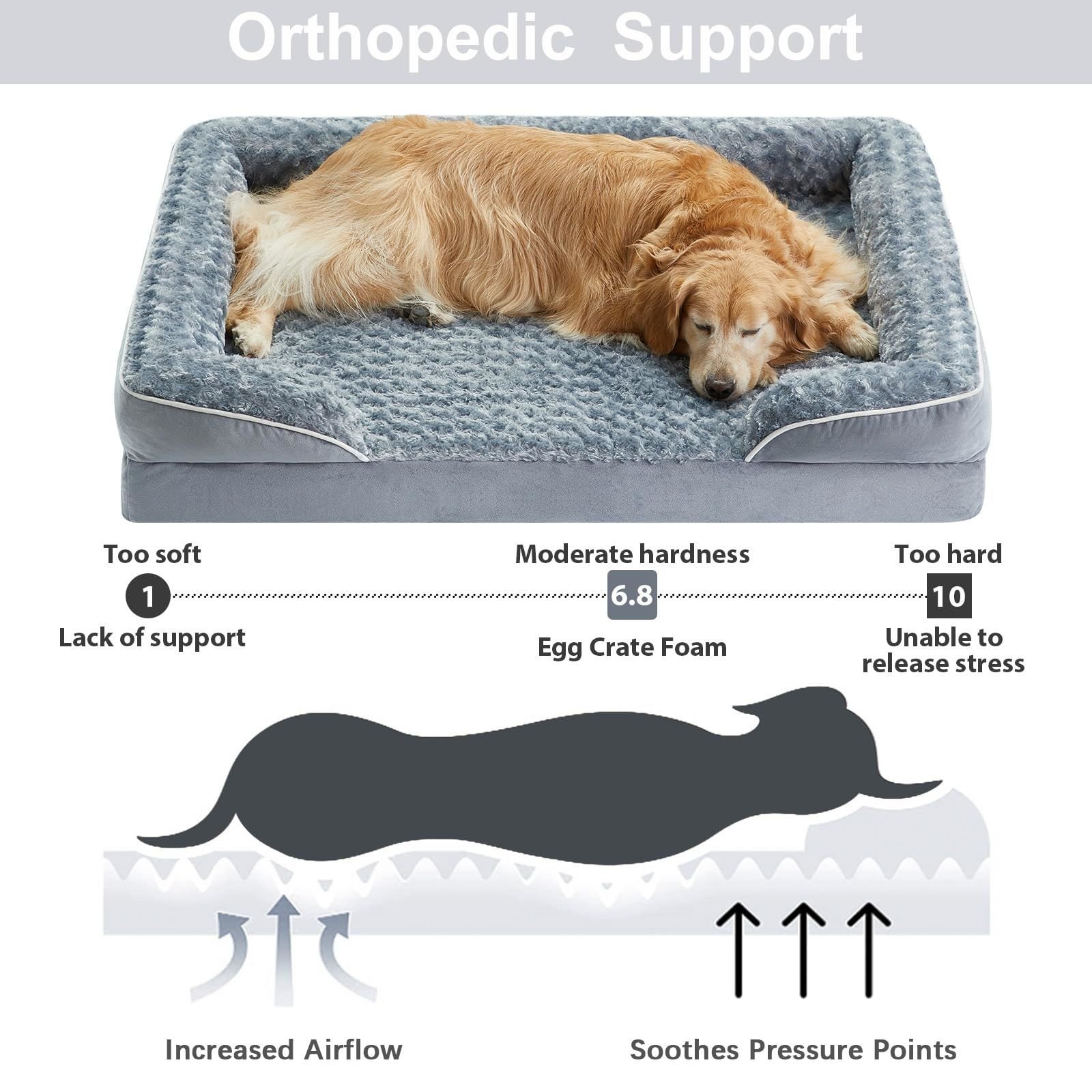 MADE FOR COMFORT: The orthopedic dog bed features 3.5 inches of high-density egg foam to support and relieve your fur baby's muscles and joints. The large dog bed can provide extra support and safety, relieve joint pain or arthritis, and is a great choice for elderly and sick dogs.