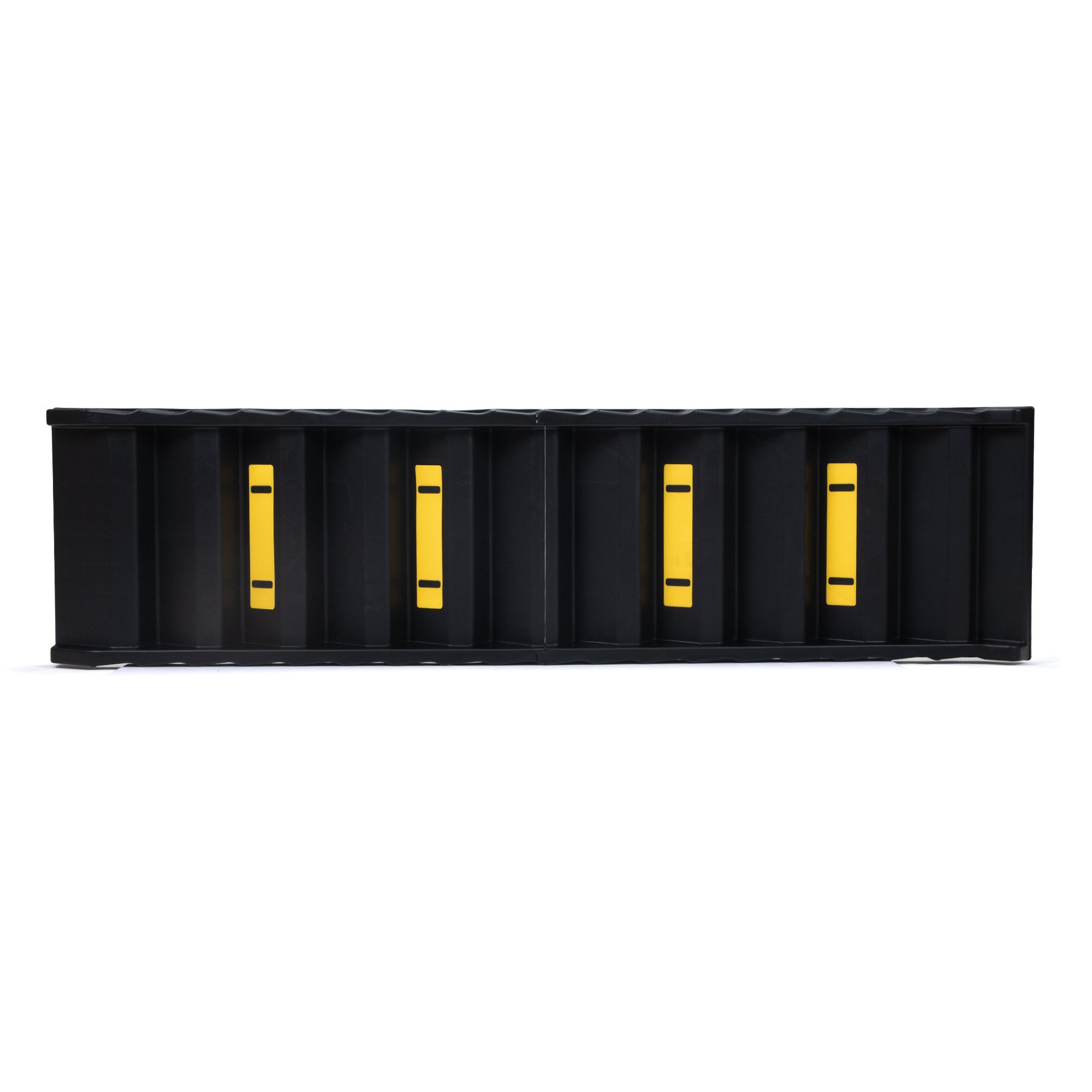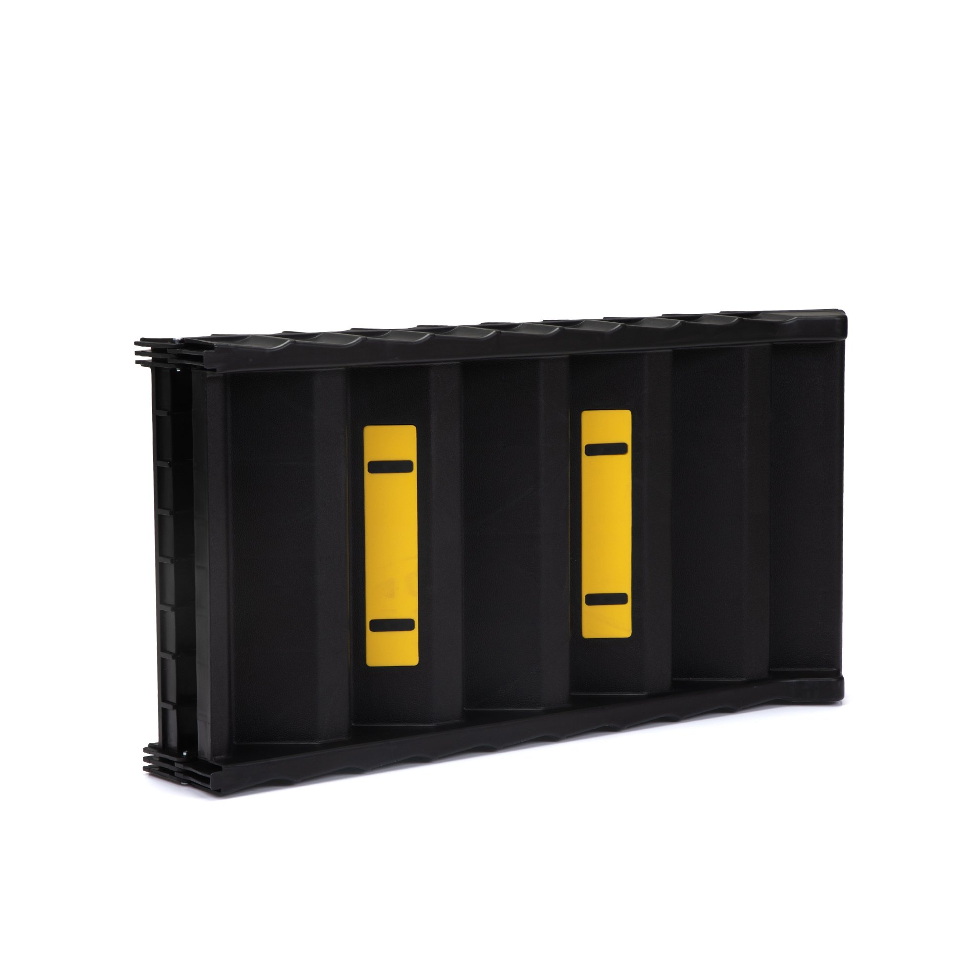 Specifications:Color: Black + YellowMaterial: PPExpanded Dimensions: 60.63"L x 15.75"W x 2.95"HFolding Dimensions: 31.1"L x 15.75"W x 5.51"HEach Step Dimensions: 13.58"L x 3.15"WNon-slip Mat: 9"L x 2"WMax. Weight Capacity: 180 lbsNet Weight: 8.6 lbs