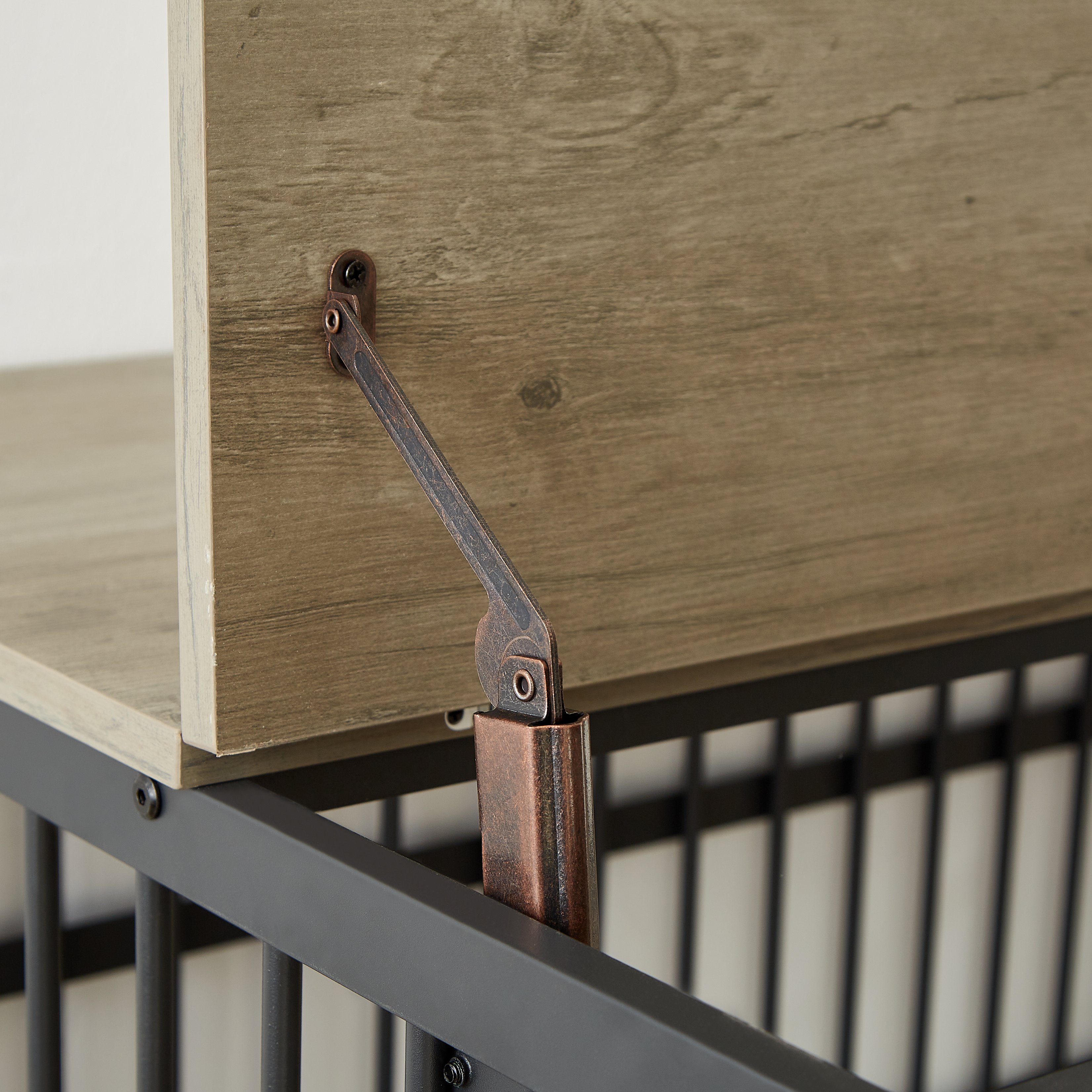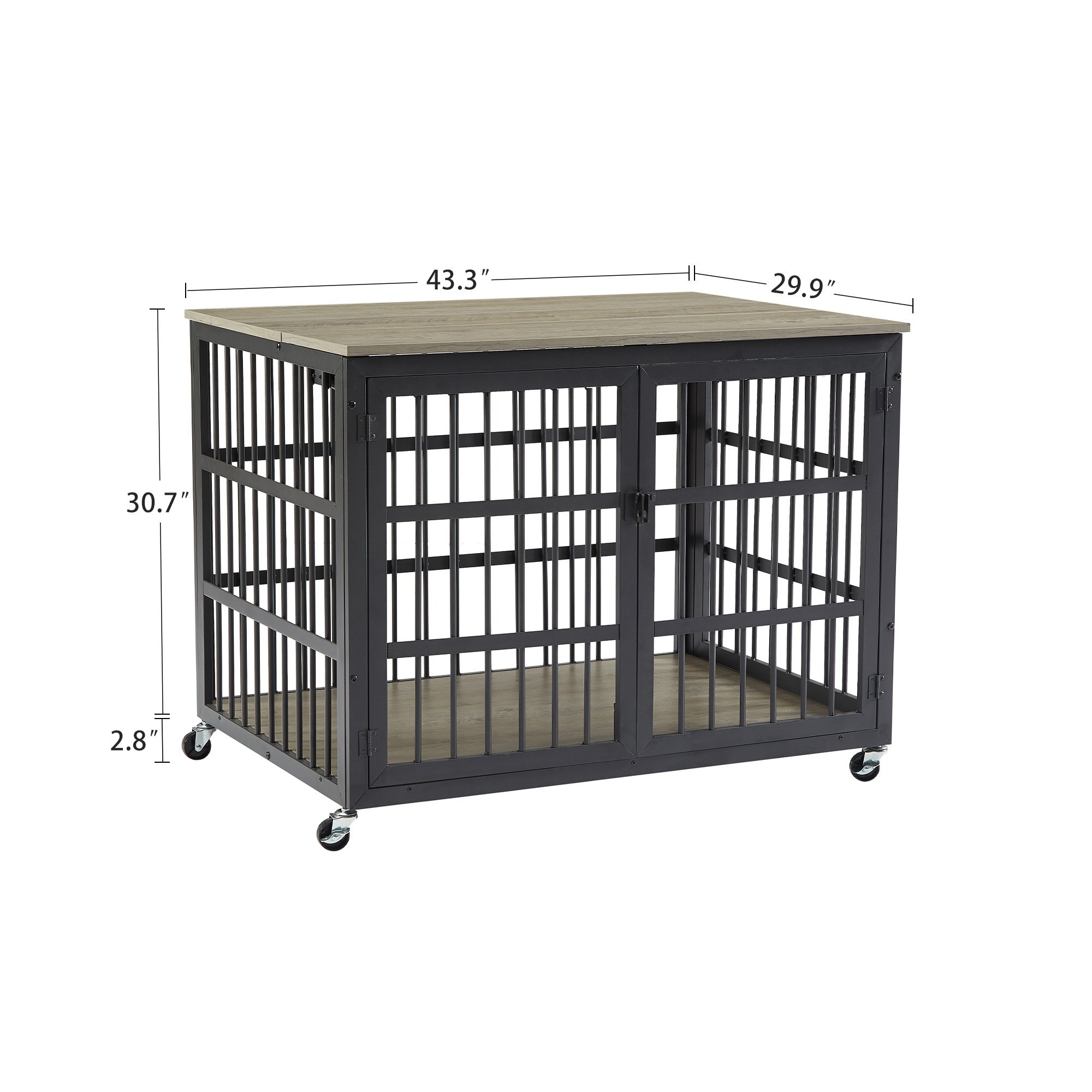 Home > Furniture style dog crate wrought iron frame door with side openings, Grey, 43.3''W x 29.9''D x 33.5''H.