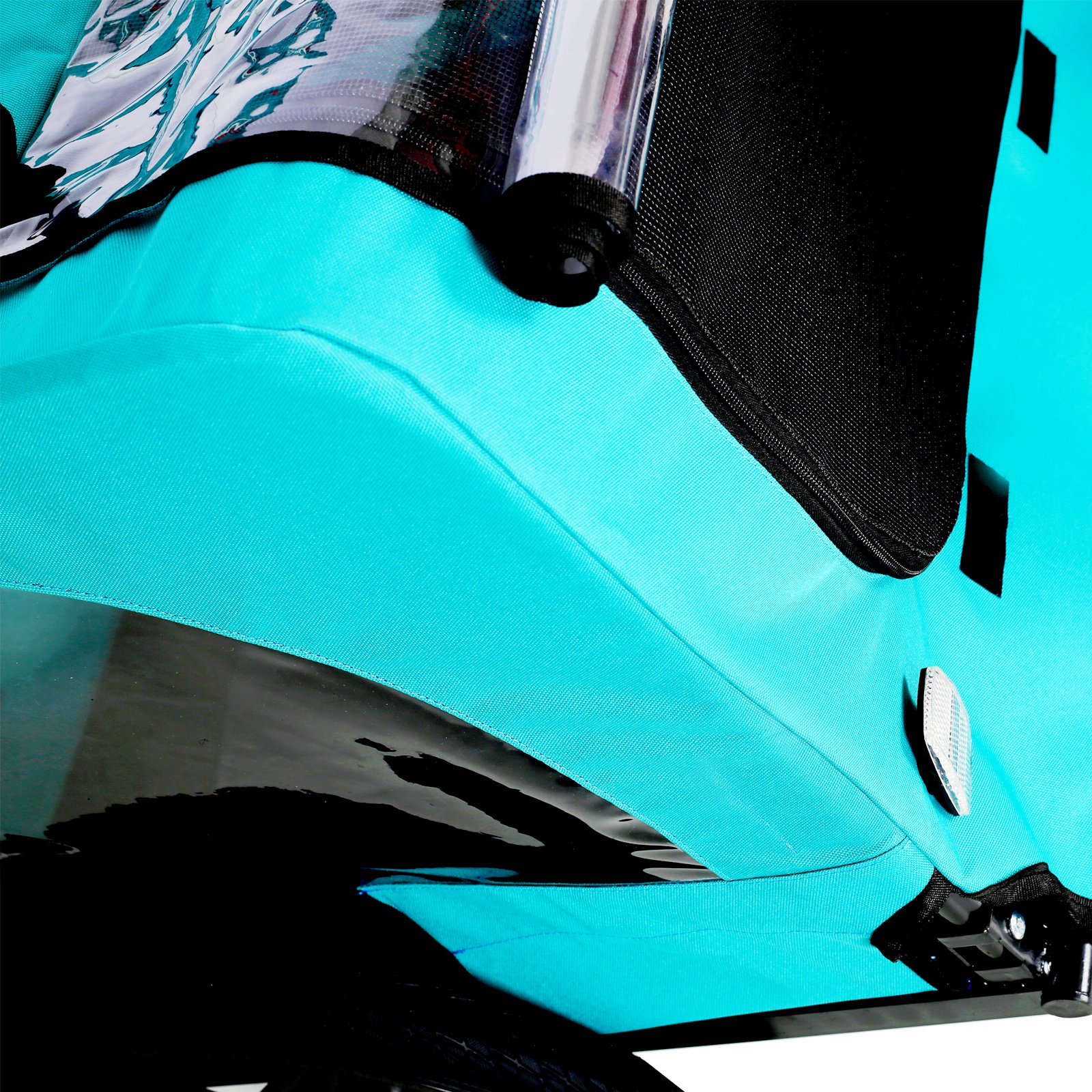 Safe Design: This dog bicycle trailer includes internal leash and no-slip floor to keep your pup safe and secure. Hook up the trailer, clip them in and enjoy your ride. The reflector provides extra protection when it is dark, and the triangle flag makes it easy to see in bad weather