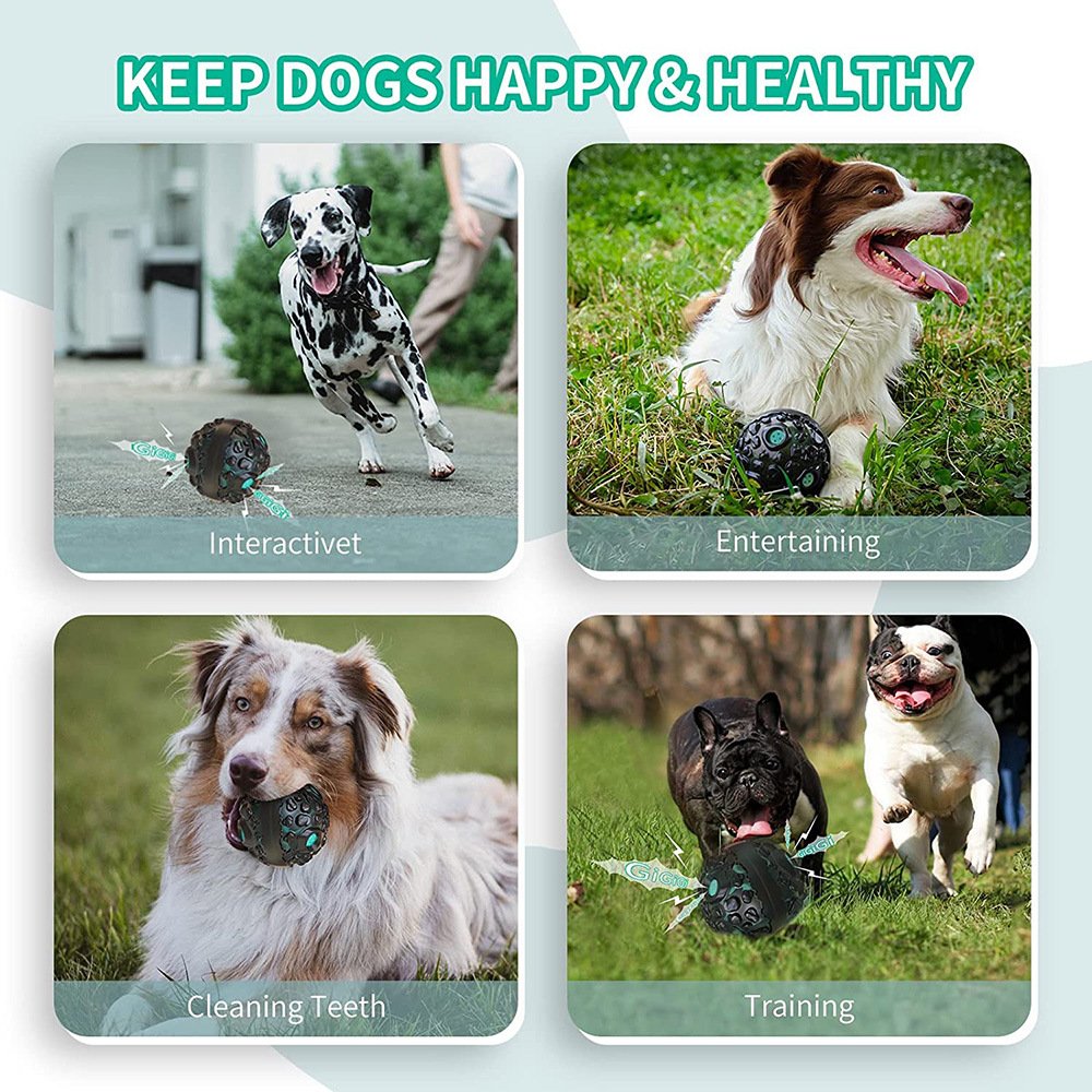 1. Funny Interactive Ball -The dog ball has 3 built-in independent vocalizers that make a giggle sound when the ball rolls around, attracting your dog's attention and stimulating your dog's athletic ability. keeps dogs mentally and physically entertained.no batteries required