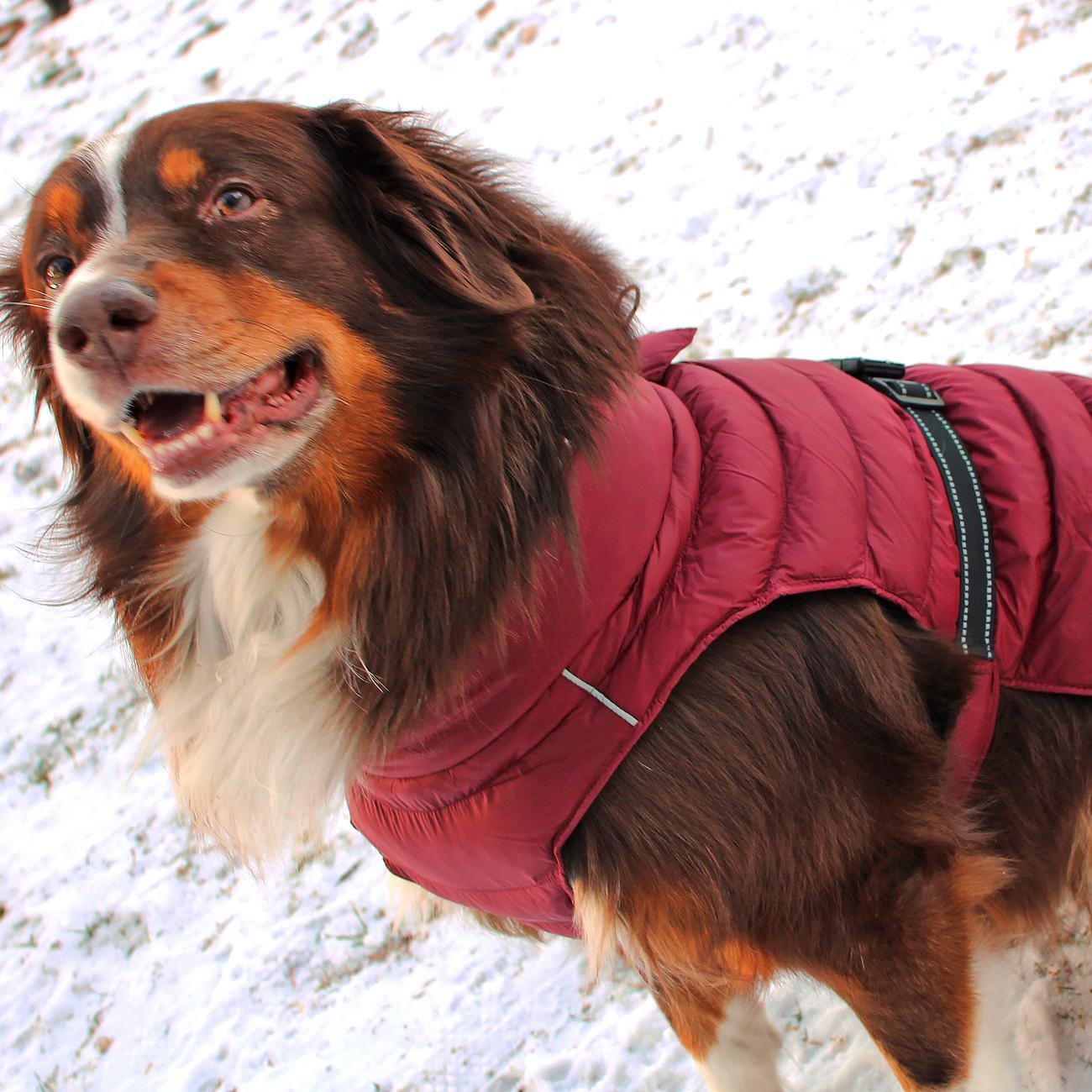 Our Puffer Coats are perfect for all types of outdoor adventures. Made with a waterproof exterior, this coat is perfect for keeping your dog warm and dry. Lined with thick fleece and filled with warm fiber insulation, your pup will be ready to take on the trail ahead. We have worked tirelessly to ensure a perfect fit for dogs of all shapes and sizes; from a 3-pound pup to a 150-pound pooch, the Puffer Coat is sure to be a perfect fit every time. Featuring a simple design that slips over the dog’s head and a quick snap of the adjustable buckle over the back with a leash hole for easy walking.