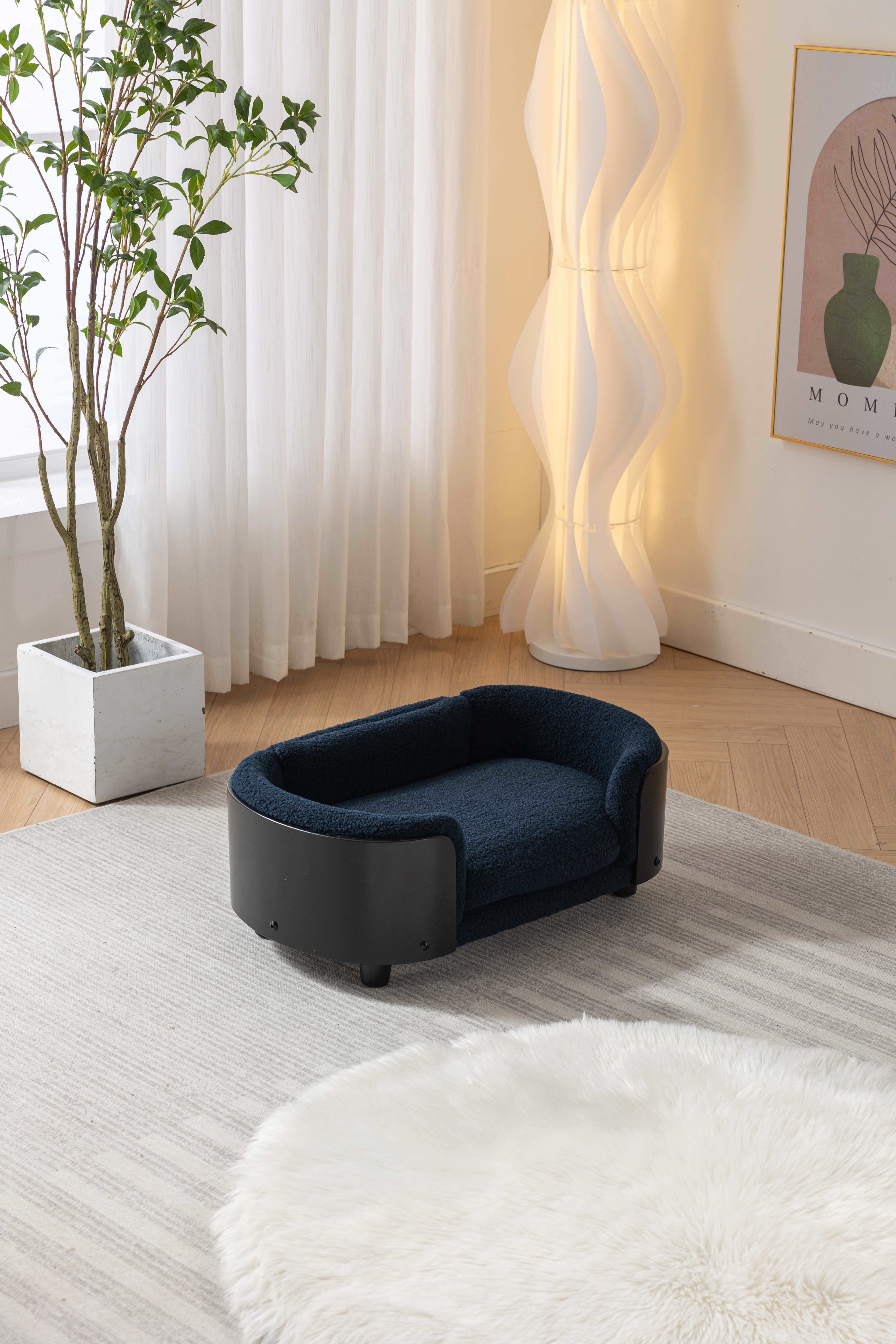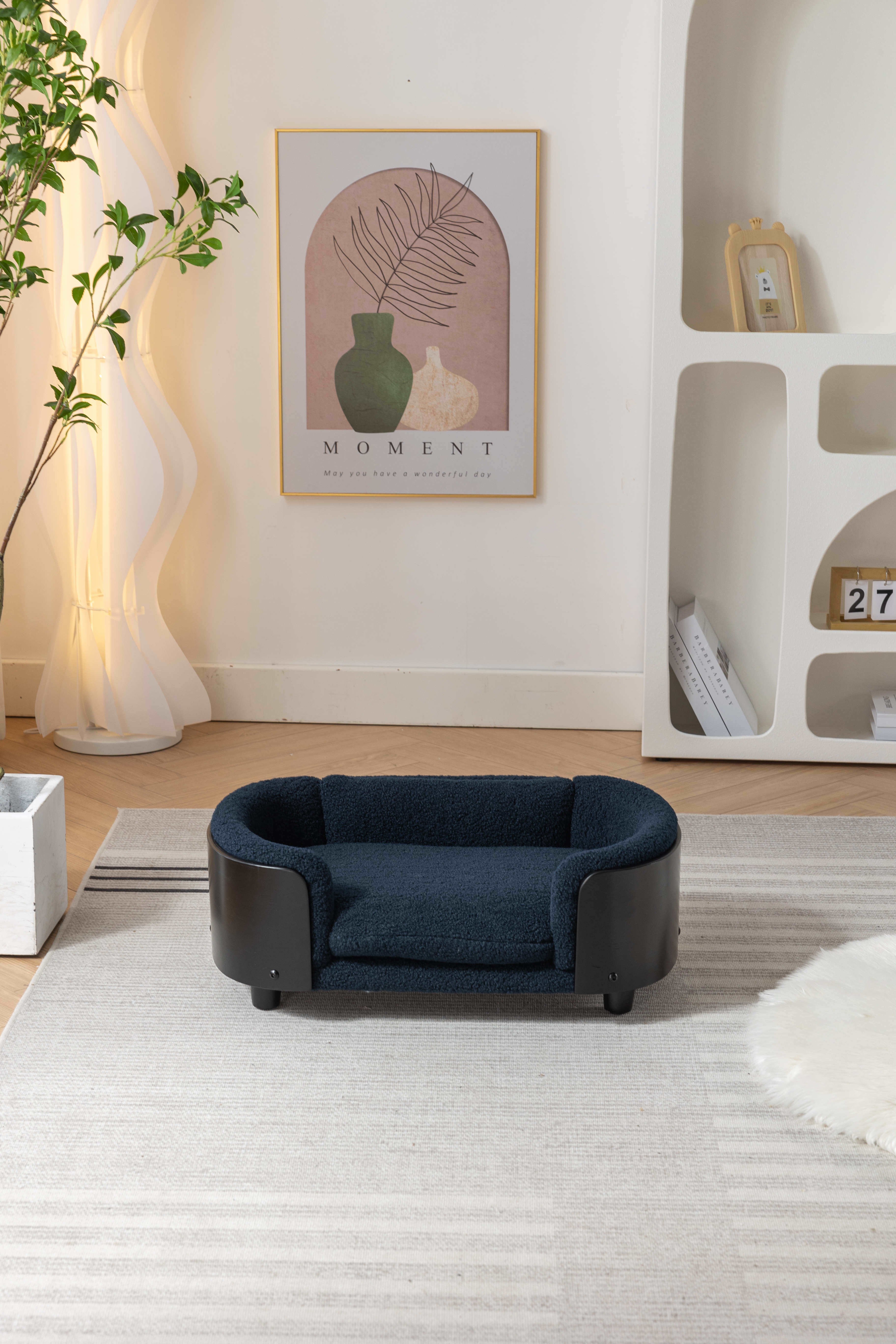 Scandinavian style Elevated Dog Bed Pet Sofa With Solid Wood legs and Black Bent Wood Back, Cashmere Cushion,Small Size